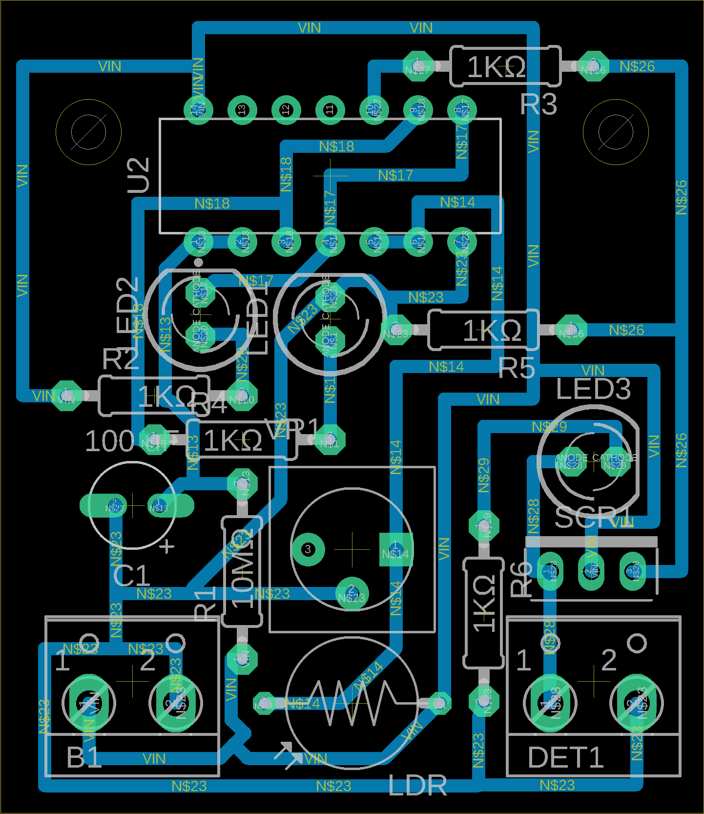 Lab Overview A Quad NOR gate IC is used to ensure the RC Timer has elapsed before the LDR can trigger a SCR to fire a detonator. This circuit simplifies the original design by removing redundant connects and streamlining the layout. Tools / Parts / Test Equipment Soldering IronHelping Hands Solder Multimeter